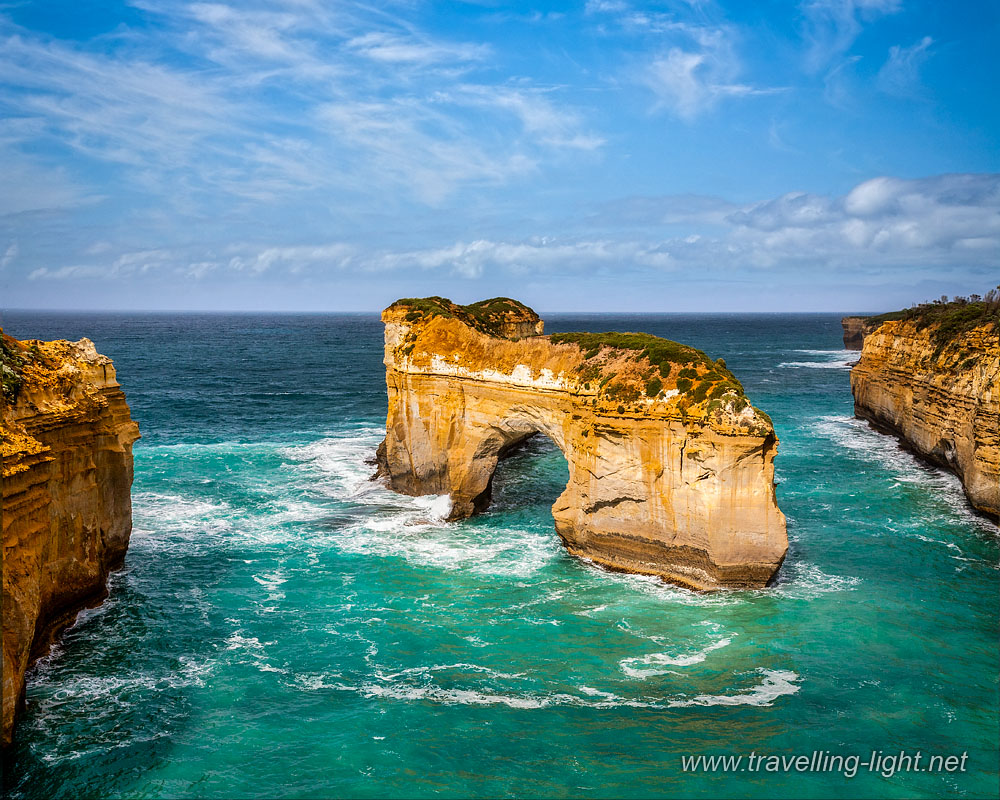 Sea stacks along the Great Ocean Road, Victoria, Australia. This is Island Arch, Loch Ard Gorge, one of Australia's most popular travel destinations.